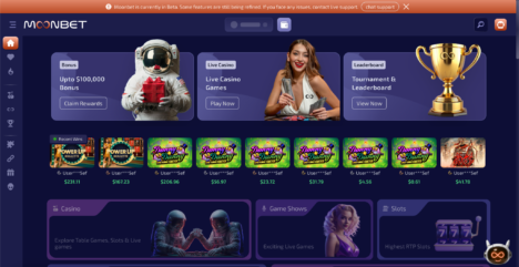 Moonbet also gives 20% instant rakeback from your first bet, plus a 4-10% Moonback lossback paid as real cash. Pokies include Gates of Olympus, Sweet Bonanza, and Book of Dead, from Hacksaw Gaming, Nolimit City, and Pragmatic Play.