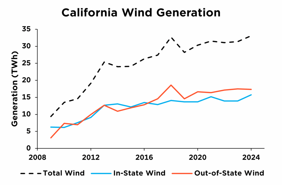 California has a long history with wind power. It was home to one of the first large-scale wind farms, which was built in Altamont Pass in the early 1980s. More recently, the last big buildout of wind power occurred in the early 2010s, with many of those projects built in Tehachapi Pass. Without any big investments since then, California has had roughly six gigawatts (GW) of in-state wind capacity since 2013.