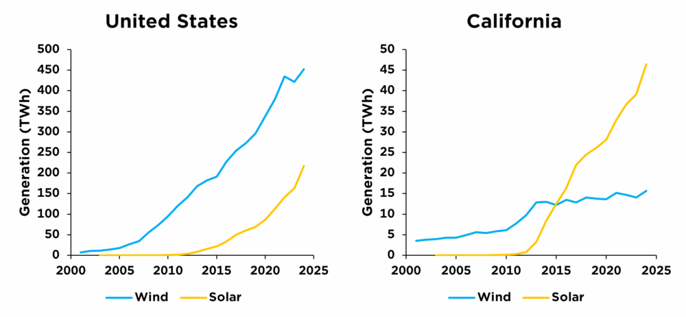 Compared to the rest of the country, something very strange has happened in California. As wind generation increased dramatically nationwide over the past decade, wind generation has only inched up in California. The state’s wind industry has come to a standstill.