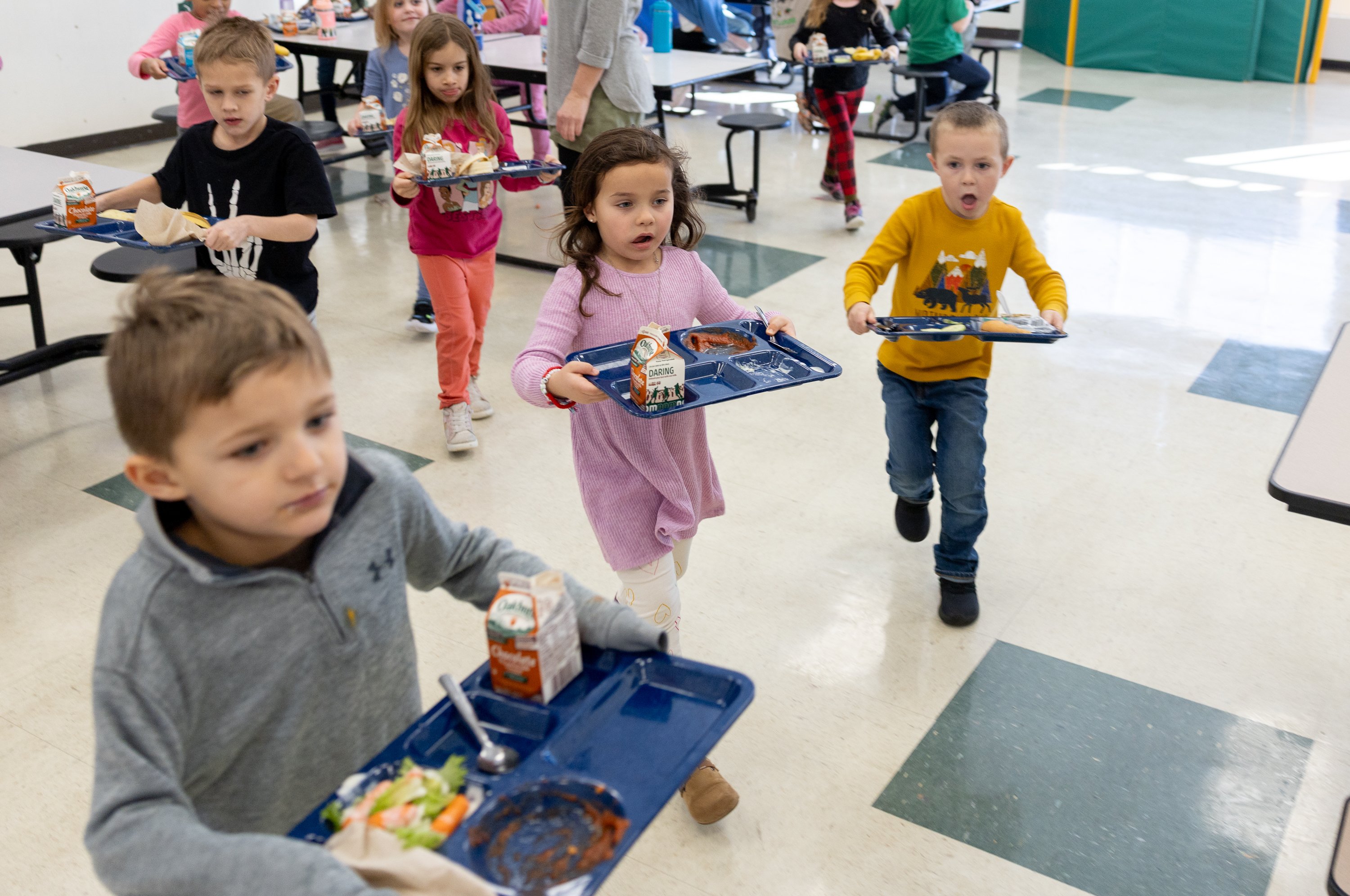 But over the course of the 9-week study — which required the school to weigh their scraps and report those numbers every day — waste did reduce, by about 40 pounds over the district’s baseline, and Therriault picked up a couple of practices that she still uses today, like rewarding cleared trays with stickers and the share bin.