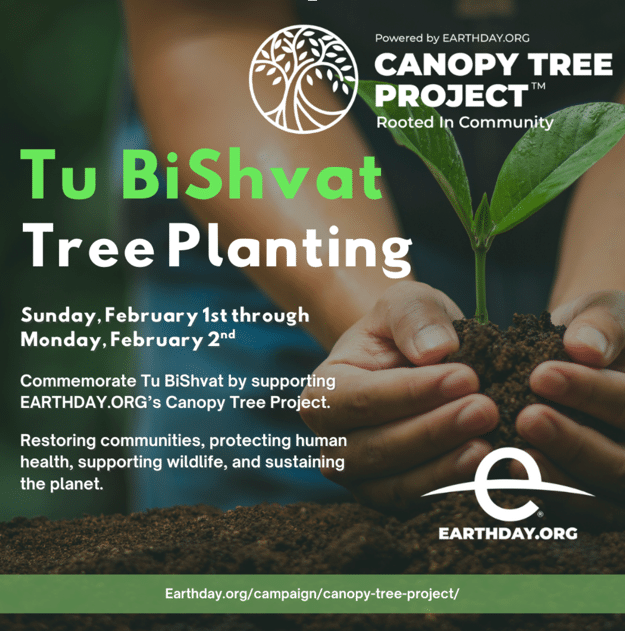 In honor of Tu BiShvat, we invite you to support tree planting and land restoration efforts with the Canopy Tree Project. Rooted in strengthening ecosystems, supporting communities, and restoring balance to the land, the Earth Day plantings bring these values to life through native trees and guidance from local communities. A gift in support of this work creates lasting environmental and community impact, especially meaningful during Tu BiShvat.