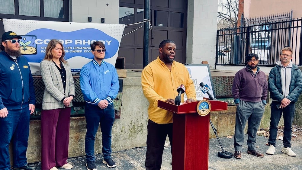 “I am a Rhode Island workers’ cooperative applicant, and I would like to come by today to share a little about my experience,” said Asher Schofield, founding worker-owner of a cooperative license applicant and owner of Frog & Toad. “First off, I should let you know that for 25 years, I’ve operated a brick-and-mortar retail business in Providence. I’m familiar with how challenging it can be to be a small business owner, competing against large-scale corporate entities from out of state, like Amazon, Walmart, or what have you. I’ve also come to experience, pretty much every November and December, elected officials coming through my shop and others, espousing the idea of shopping local and always trumpeting that the locally owned businesses are the backbone of our economy. While I appreciate that sentiment, the question persists, ‘Does Rhode Island talk the talk and walk the walk, or are we just saying a buzz phrase, something that’s going to ingratiate us with the voting population?’