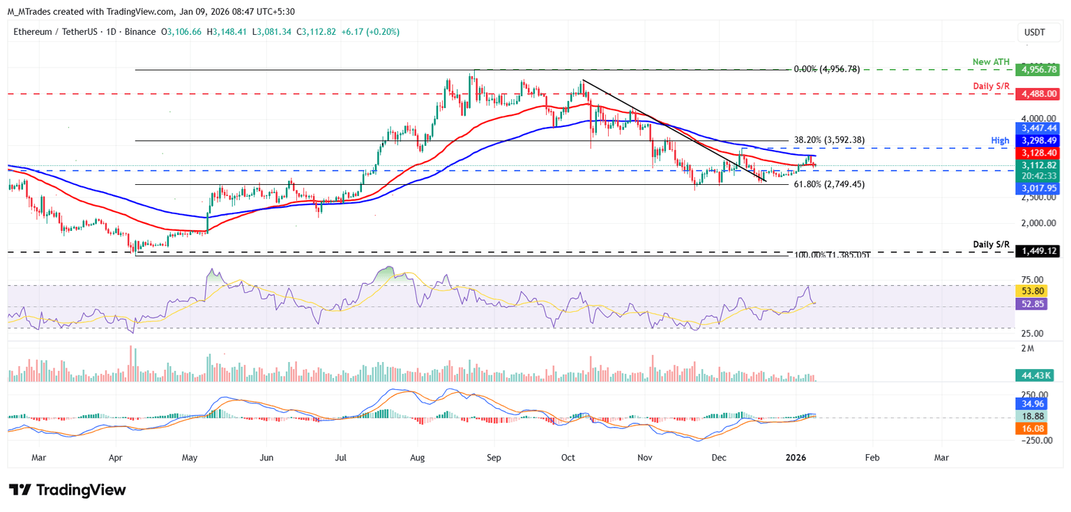 If the 50-day EMA at $3,128 holds as support, the ETH price could recover toward the 100-day EMA at $3,298. A successful close above this level could extend gains toward the December 10 high of $3,447.